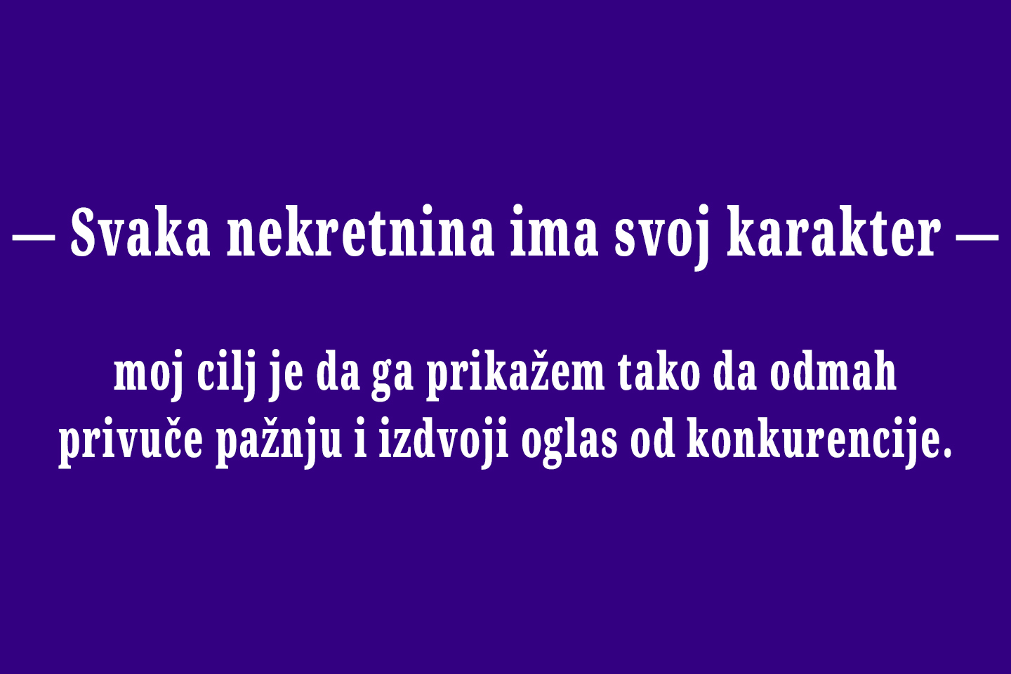 Sarađujem sa agencijama, investitorima i privatnim prodavcima koji žele da svoju nekretninu predstave na najbolji mogući način.